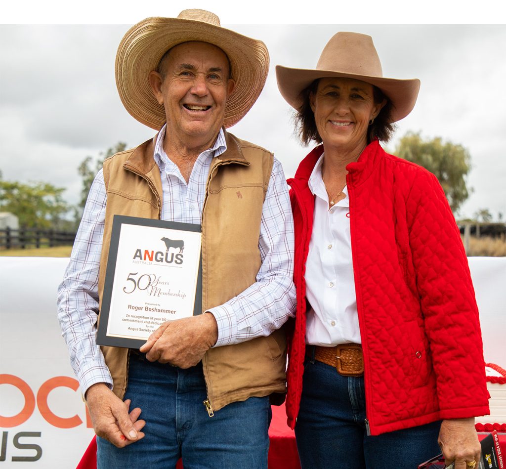 The Boshammer family have all contributed to the Sandon Glenoch Angus sale under this banner with prefixes, JK (Justin and Kate), Canaga Angus (Allison and her son Tom), NB Genetics (Nick and Kate) and Belinda (sells under the Glenoch Angus banner with the late Jack Atkin (WJ) as Sandon, which is now incorporated into the Glenoch herd. Justin and Kate, and Allison and Tom, are selling their bulls separately at their own on-property sales and by Private Treaty throughout the year. Roger now has 6 grandchildren, Tom, Theo and Mac, Willa, Gus and a recent arrival, Poppy.